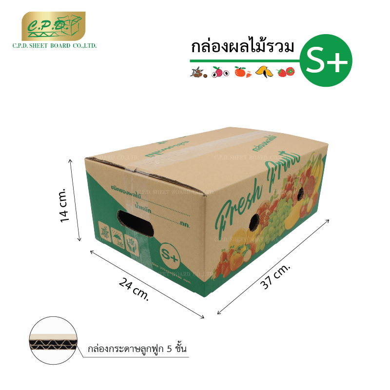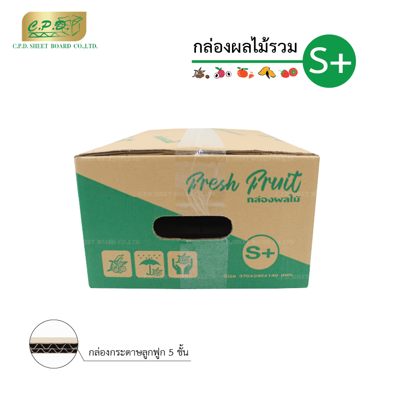 กล่องผลไม้รวม S+ (แพ็ค 20 ใบ) – ขนาด 24 x 37 x 14 cm. ( ก x ย x ส) – สั่งซื้อขั้นต่ำ 1 แพ็ค แพ็คละ 20 ใบ – ราคาใบละ 13 บาท – ราคานี้เป็นราคาที่รวมภาษีมูลค่าเพิ่ม Vat 7% แล้ว – ราคานี้ยังไม่รวมค่าจัดส่ง